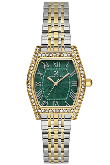 Reloj analógico para mujer DANIEL KLEIN DK-14106-4, Con esfera verde, caja y correa de acero bicolor. 27 mm.