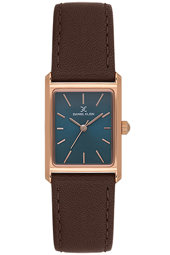 DANIEL KLEIN DK-14124-5. Reloj analógico para mujer de diseño rectangular de 22 × 32mm. Cuenta con una esfera azul, una caja de acero rectangular del oro rosa y una elegante correa de piel marrón. Equipado con un fiable movimiento de cuarzo japonés.
