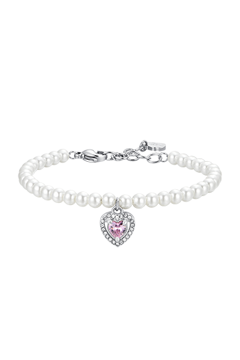LUCA BARRA BK2664. PULSERA CORAZÓN DE PERLAS DE ACERO Y CIRCONITAS ROSAS