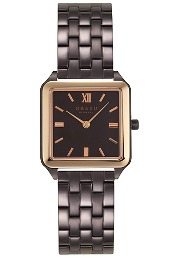 Obaku GRAF Walnut Este reloj ultrafino de 26 mm, con menos de 5 mm de grosor, presenta una caja de color chocolate y una correa de malla con un anillo superior en oro rosa y una esfera a juego en color chocolate. Con cristal de zafiro resistente a los arañazos y elegantes números romanos.