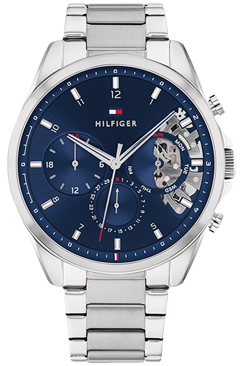 Este reloj marca Tommy Hilfiger tiene una caja de Inox con un diámetro de 43.5 mm y cuenta con una correa de metal. Dentro de la caja se encuentra un mecanismo de Seiko Instruments Inc. de alta calidad el cual esta protegido por un cristal Mineral.